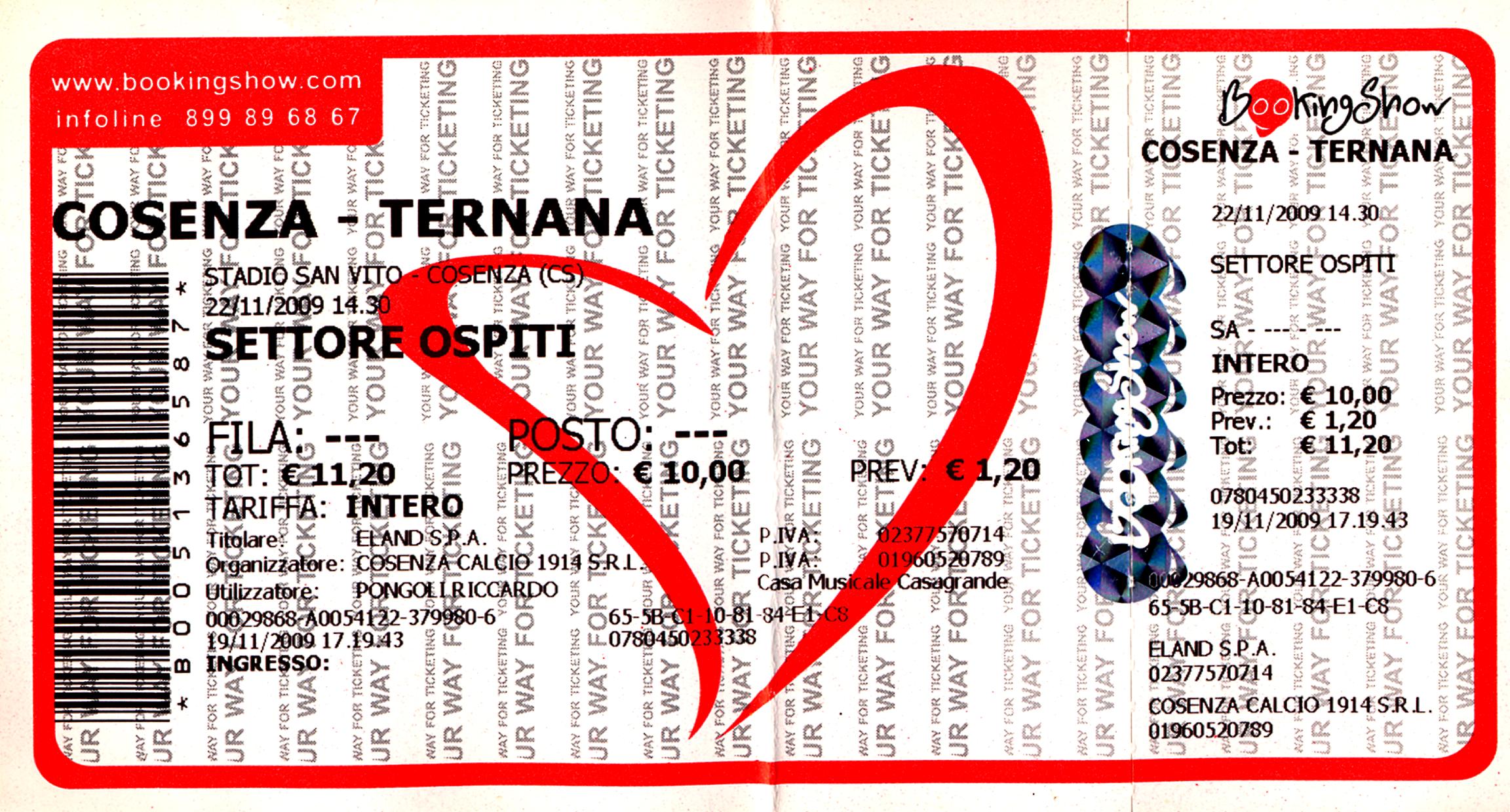 2009-11-22 Cosenza-Ternana 1-0 Biglietto (Pongoli Riccardo) (001)