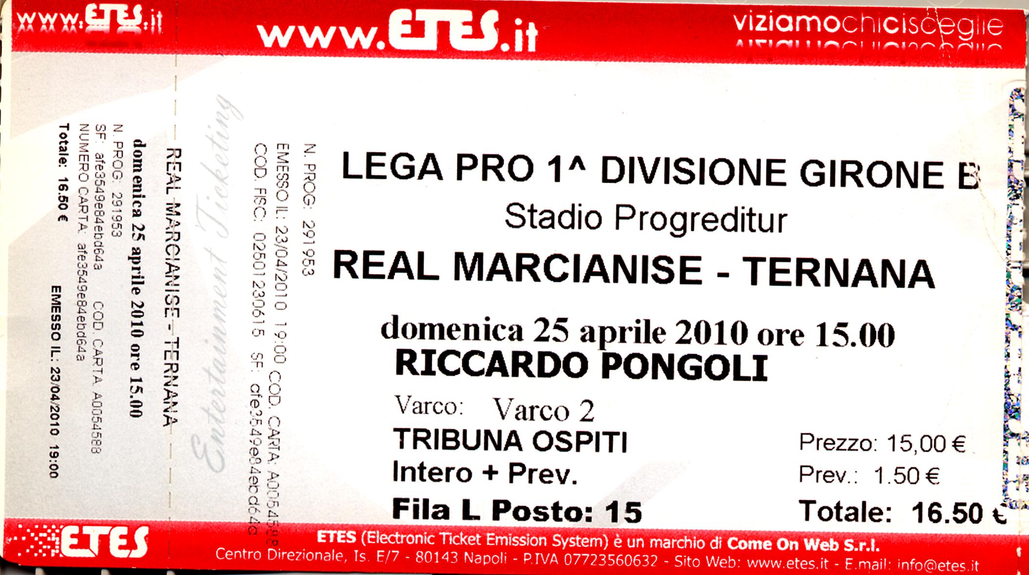 2010-04-25 Real Marcianise-Ternana 4-0 Biglietto (Pongoli Riccardo) (001)