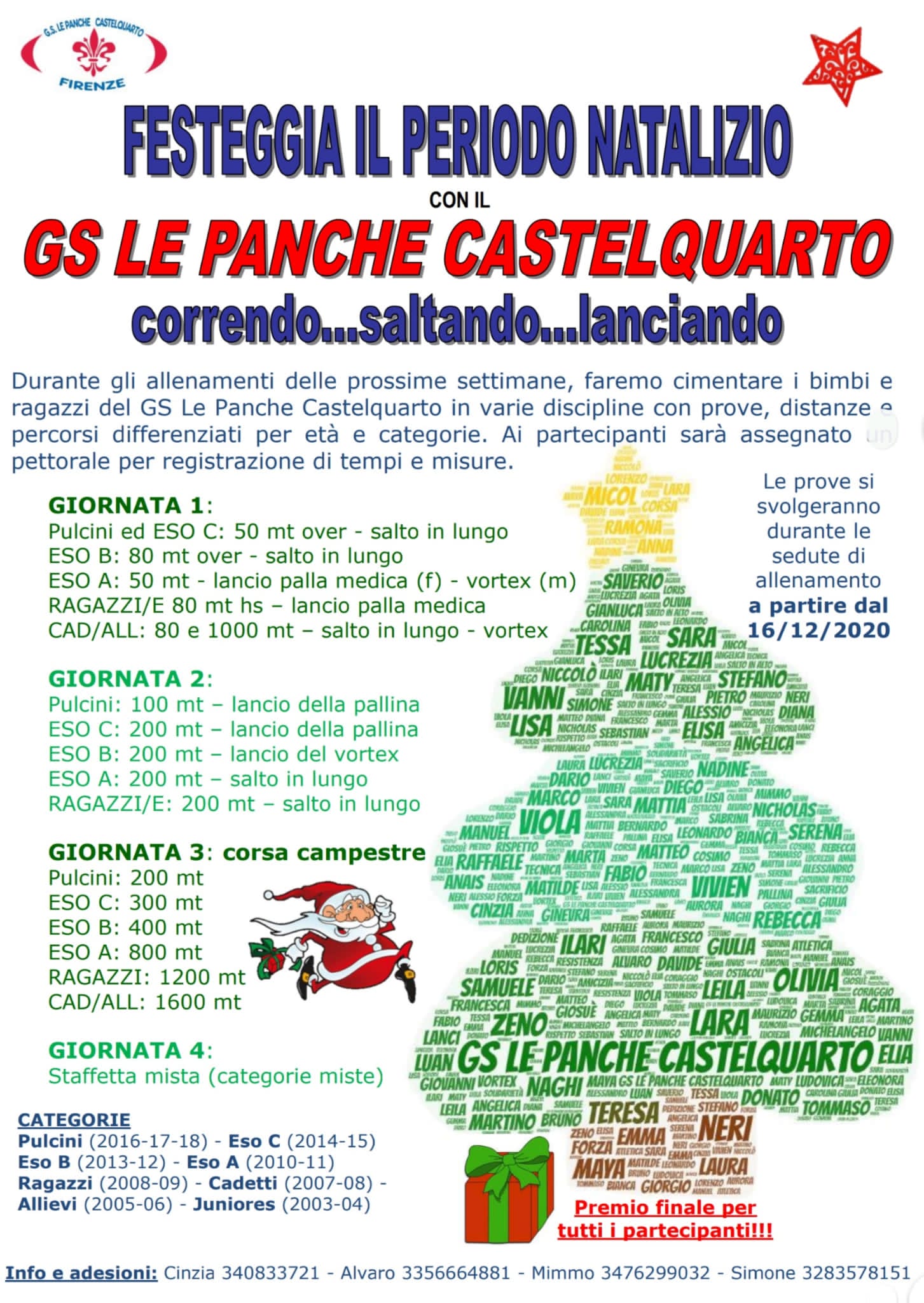 È dal 16 febbraio scorso che purtroppo non partecipiamo a delle "gare" per le categorie giovanili ed in attesa di tornare ad assaporare le emozioni di quelle manifestazioni, la società ha pensato di trasformare alcune sedute di allenamento per i nostri bimbi e ragazzi: continueremo a fare allenamento e attività come sempre, ma faremo indossare ai bimbi un pettorale, prenderemo nota di tempi e misure e, alla fine di tutte le giornate previste, tutti i partecipanti riceveranno un premio. Inizieremo a partire da mercoledì 16 dicembre. Non mancate!