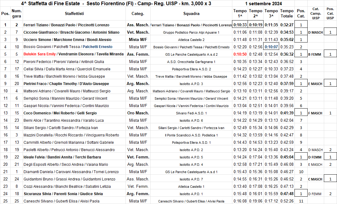 Classifica Staffetta di fine Estate 2024