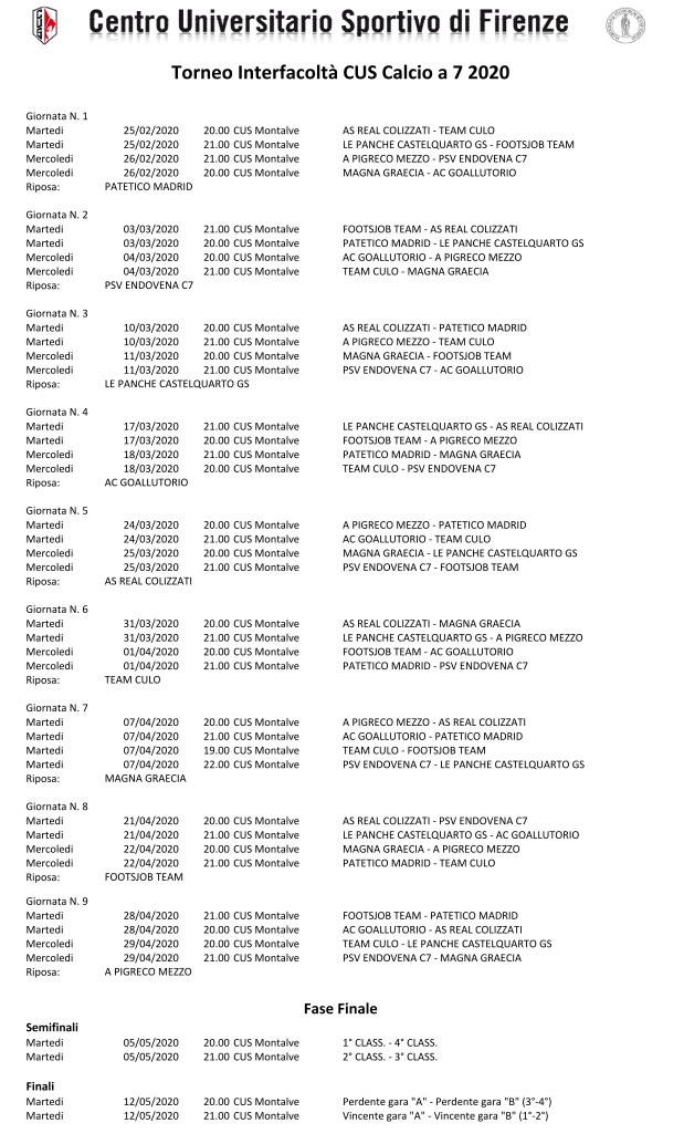 La "logistica" è semplificata, perché le partite si disputano presso il campo delle Montalve, dove svolgiamo anche le attività di Atletica Leggera. Approfiitando di questo, invitiamo tutti a venire a fare il tifo per i nostri ragazzi, seguendo il calendario allegato.
