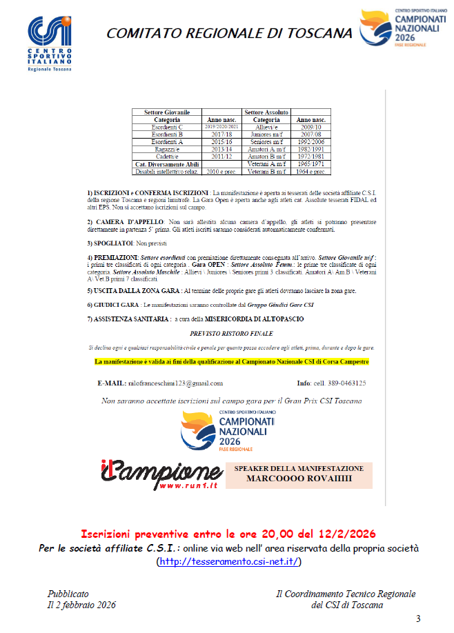 Corse in programma
